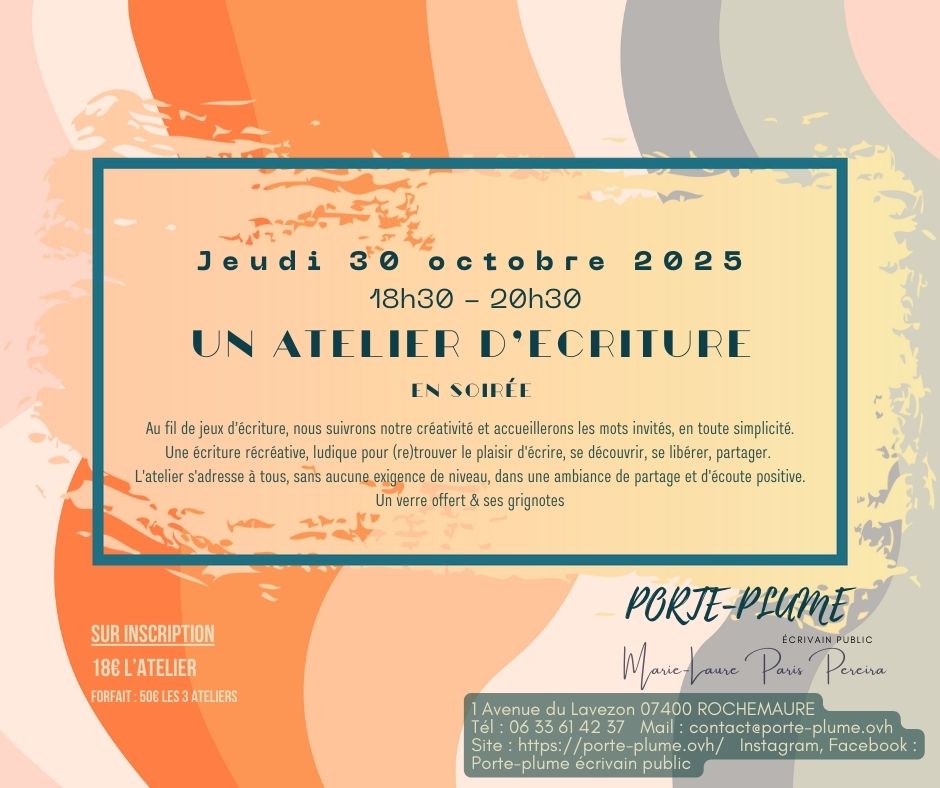 Inscriptions au 06 33 61 42 37 ou contact@porte-plume.ovh